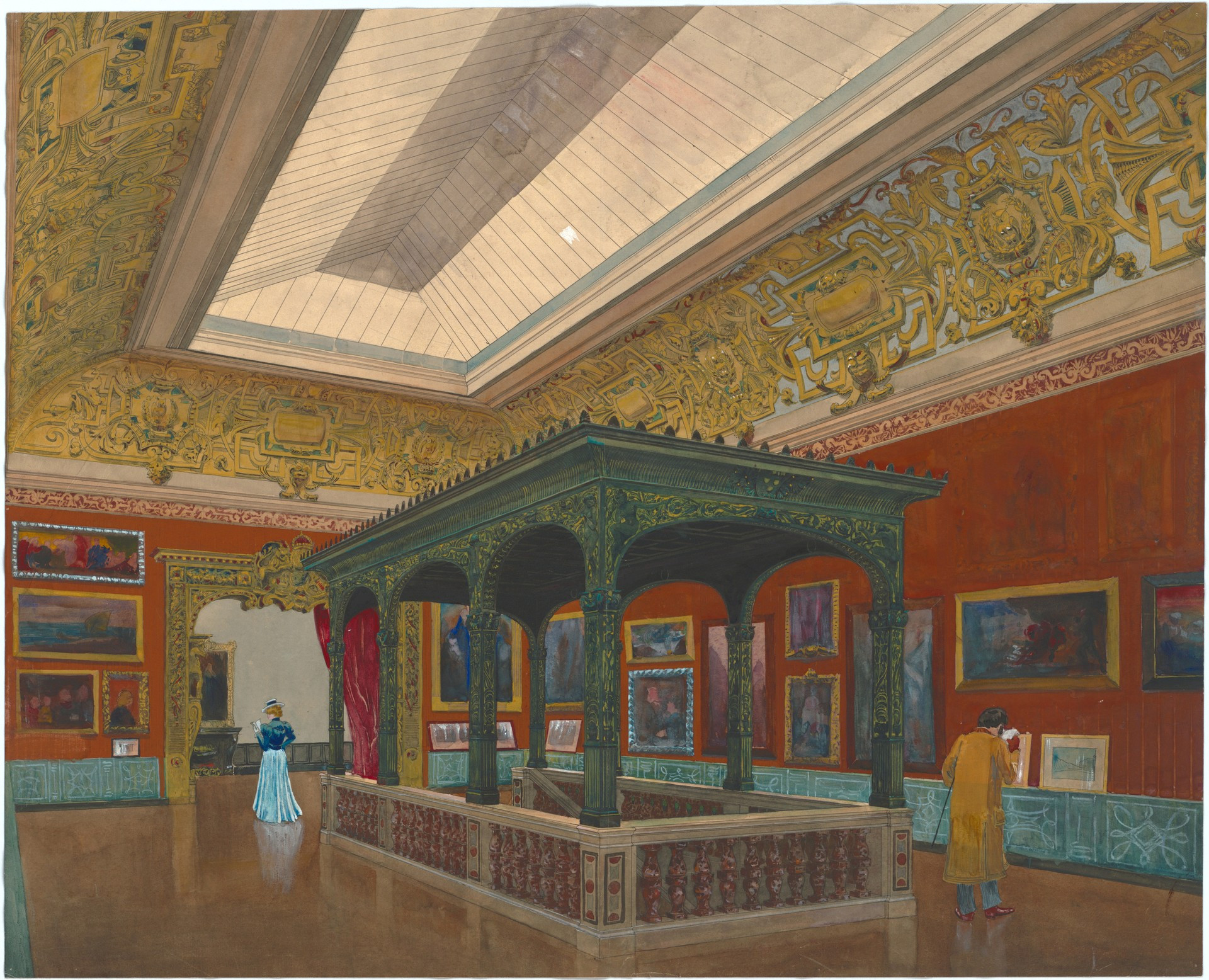 Further indications of the need for distinction through the use of a certain style can be seen in the conversion of the association building in 1899/1900 by, among others, Friedrich Thiersch, Franz von Lenbach, and the Kunstverein board. The redesign of the rooms at the end of the arcades of the Hofgarten, which with their marble fireplaces and other details were already considered lavish, resulted in “a reflection of the upper middle-class representation,” [12] with all registers of ostentatious ornamentation, which was in fact also controversial in membership circles. “Bourgeois club sociability thus—contrary to its claim—often takes on a decidedly elitist and exclusive form; it wants to demonstrate not only a noble disposition but also fine society. Art is excellently suited for this purpose, without letting bourgeois exclusivity immediately fall into the suspicion of old privileged thinking. For in contrast to the nobility, it is not only a matter of possession, but also of connoisseurship.” [13] This connoisseurship will play a major role in the history of the art associations in the emergence of a new social type that harmonizes perfectly with the self-created market structures and also boils down to a strong classification: figures in the service of professionalization (more on this in the 20th century).
