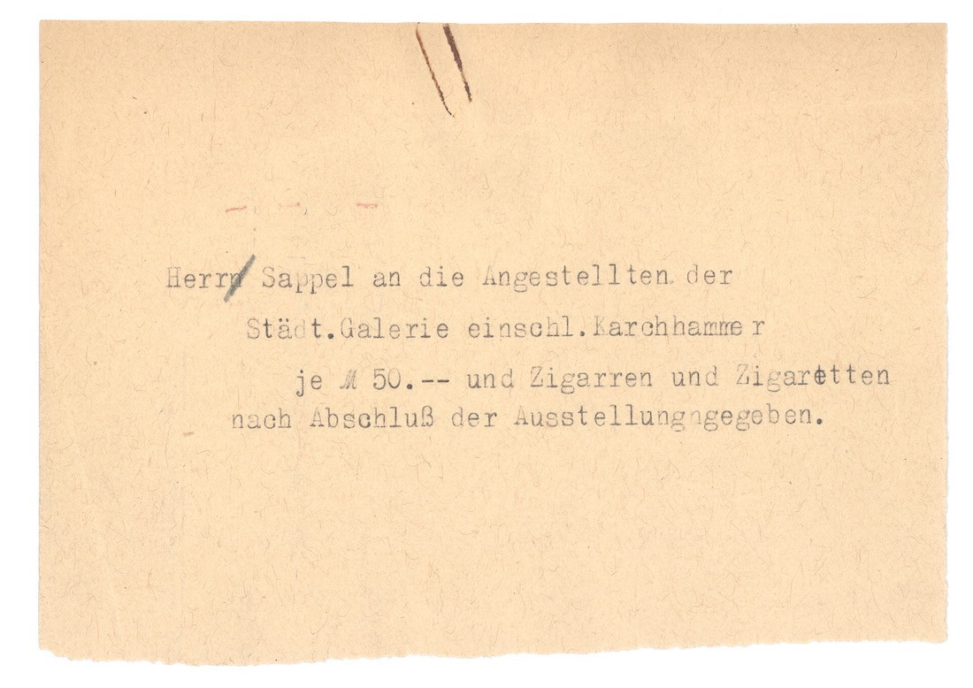 What impact can this historical research have beyond the collection and interpretation of facts? One effect and a central concern of this text is to raise awareness of the diverse connections between personnel, artistic, and political contexts in art institutions—both in historical research and in the present. Here, it is also important to keep in mind the question of how public and private funding influence the work and orientation of institutions like Kunstvereine and museums, as well as research into their history. At present, critical engagement with the Nazi era and its impact on society is increasingly being called into question by right-wing extremist and right-wing populist actors and parties.[38] It is thus all the more important, both now and in the future, to network and exchange ideas in order to work together for a society based on democratic values and a critical examination of Germany's history.