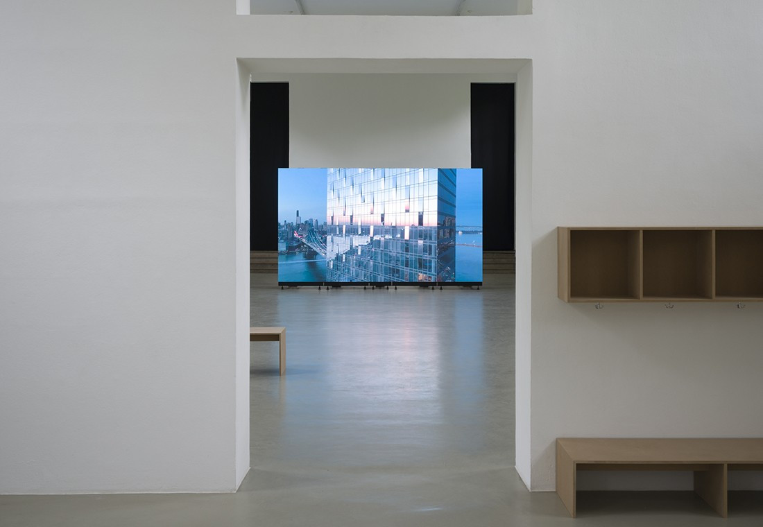 Imitation of Life is the first institutional solo exhibition in Europe by Carissa Rodriguez. The exhibition centers on a new comprehensive video work created during the first year in the life of the artist’s first child. Filmed exclusively during the hour between 6am to 7am, it is not the sunrise that is recorded, but its reflection in the phallic mirror: a nearby skyscraper seen from the window of the baby’s room in the artist’s apartment. Modes of reflexivity and “mirroring” (mental, physical, metaphorical) run throughout the whole exhibition, engaging the often-conflicting temporal demands of exhibition-making and caregiving. Imitation of Life also features two off-site projects in the vicinity of the Kunstverein through which Rodriguez connects three distinct institutions of self-cultivation: the museum, the school, and the cinema.