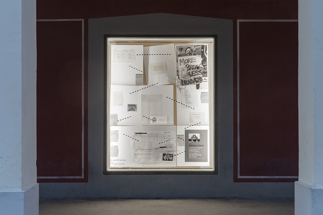 On and Off the Grid is a yearly program of presentations and events dedicated to various form(at)s of publishing and located in the window display at the Hofgarten. The series conceives of “publishing” in a broader sense beyond and between conventional types of media, and attempts to provide a platform for the introduction, examination, and (re)negotiation of the materials and processes involved in publishing. The format was inaugurated with Unbidden Tongues, which since its beginnings in 2020, has published previously produced yet relatively uncirculated work by cultural practitioners busy with questions surrounding civility and civic life—particularly in relation to language and its administration. The first five titles were each dedicated to a single person, namely Ruth Wolf-Rehfeldt, Karen Brodine, Adrian Piper, Janet McCalman, and Theresa Hak Kyung Cha.