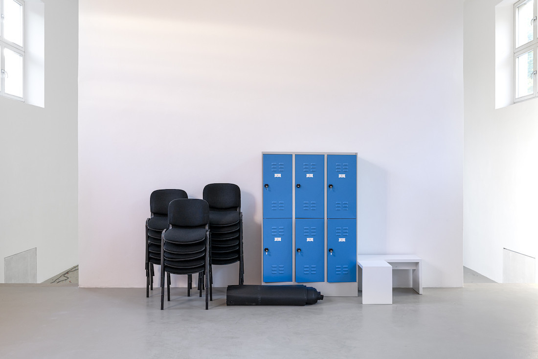 Iris Touliatou’s solo exhibition Shifts is on view through the end of November. Conceived as a site-responsive constellation, it positions Kunstverein München both as backdrop and as co-constitutive material. Anchoring itself within the institution’s rhythms and procedures while at the same time expanding them, the exhibition takes its social environment as both subject and material, seeking to survey relations, particularly those overlooked, denied, or taken for granted. Touliatou’s newly conveived works engage the Kunstverein, its surroundings, and intertwined infrastructures—from the neighboring Deutsches Theatermuseum and negotiations with the landlord (the Bavarian Palace Administration) to the institution’s publics, and its conditions of visibility, production, and funding. Operating from within while leaning outward, Touliatou mobilizes infrastructural thinking to probe how forms of labor, class, and citizenship appear, circulate, or are withheld within institutional frameworks.
