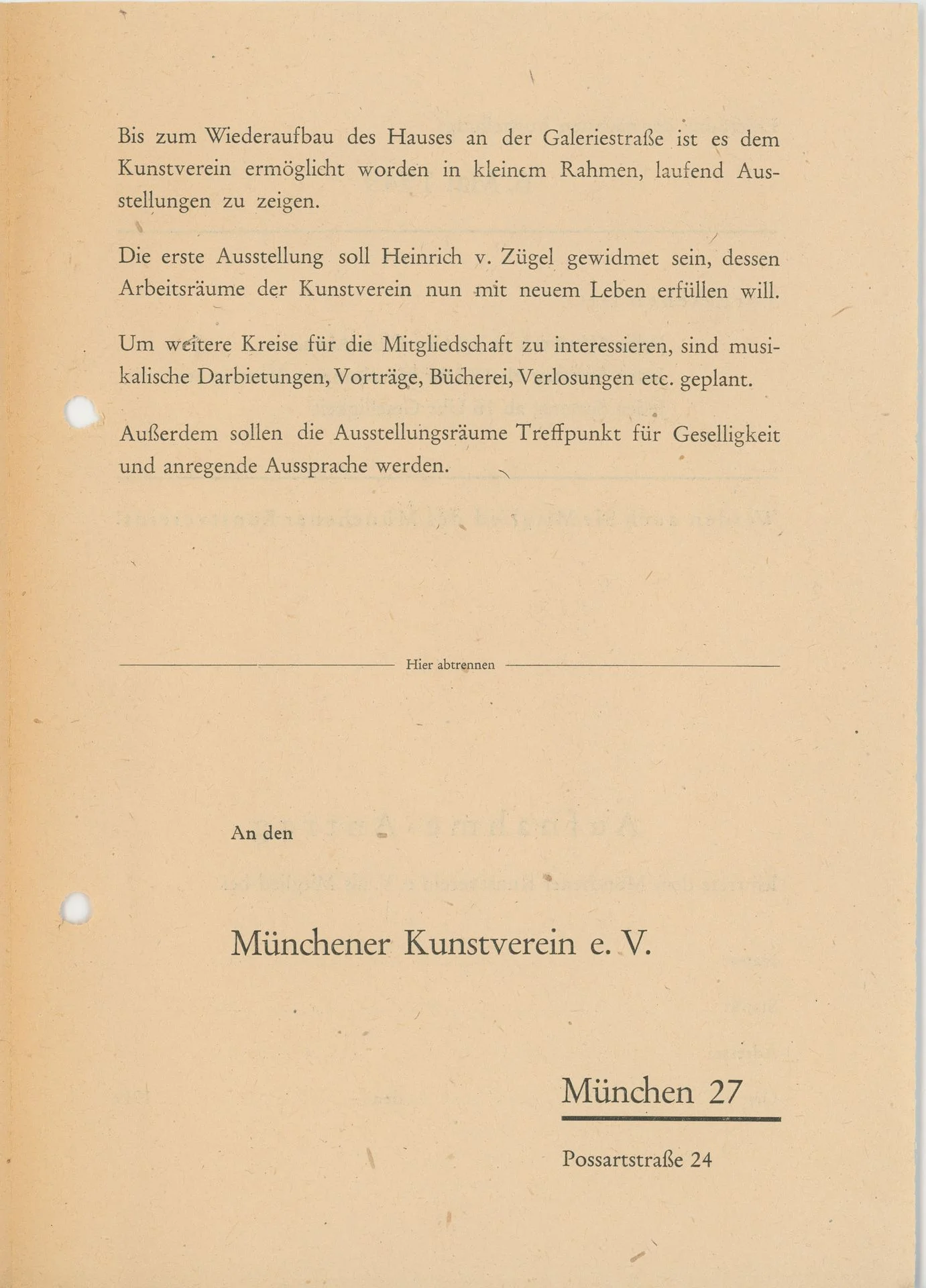 [1 - 2] Aufnahmeantrag aus dem Ausstellungsfaltblatt. Courtesy Kunstverein München e.V.