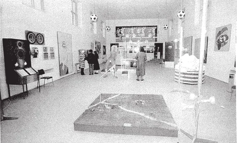 "'FC Bayern' als Kunstthema anzubieten, und zwar mit allem Für und Wider, wie es unsere von Aktivitäten getriebene junge Generation, eben zur Diskussion zu stellen weiß, im Münchner Kunstverein wird es zum Ereignis. Dort stellt (bis 4. März)die Akademieklasse des Mal- und Graphik-Professors K. F. Dahmen ihre Semesterarbeiten zum Thema Fußball aus: 25 Kunststudenten der Jahrgänge 1945 bis 1951. Panaoptikumartig, mit viel teils liebevoller, teils bissiger Ironie angereichert, präsentiert sich die Galerie der Spielerporträts."