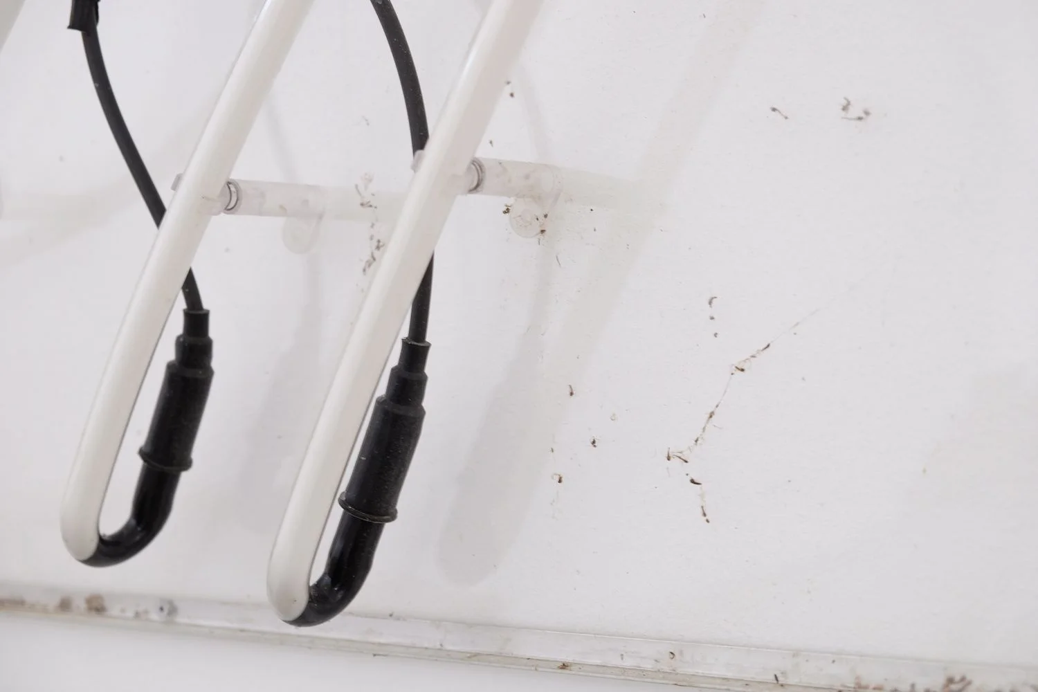 Levi hat die zwei längsten Wände des Kunstvereins behängt, indem sie die vier zusammenhängenden Ausstellungsräume mit einem ausgedehnten Raster aus Bildern auf gespannter Baumwolle verkleidet hat. Die meisten Bilder wurden vor Ort gemalt, doch einige Rahmen sind auch leer und andere hat Levi ganz weggelassen, so dass im Raster Lücken bleiben. Didžiapetris wiederum hat drei riesige Neonglyphen in diesen Lücken installiert – Vergrößerungen von Plankton, die der Künstler aus einer Reihe seiner Zeichnungen ausgewählt hat. Sie stellen neben dem diffusen Licht der Fenster auch eine weitere Ebene der Beleuchtung dar. Auf Levis Bilderraster projiziert Nashashibi einen 16mm-Film, in dessen Mittelpunkt die undurchdringlichen Augen einer Frau stehen sowie eine ganze Reihe abgedeckter Autos aus Kairo. Während Levi den Charakter der Räumlichkeiten aufhebt, indem sie Fenster, Wände und Heizkörper abdeckt, stört Nashashibi die systematische Ordnung des Rasters noch weiter mit einer Reihe von Zeichnungen auf Papier und loser Leinwand.