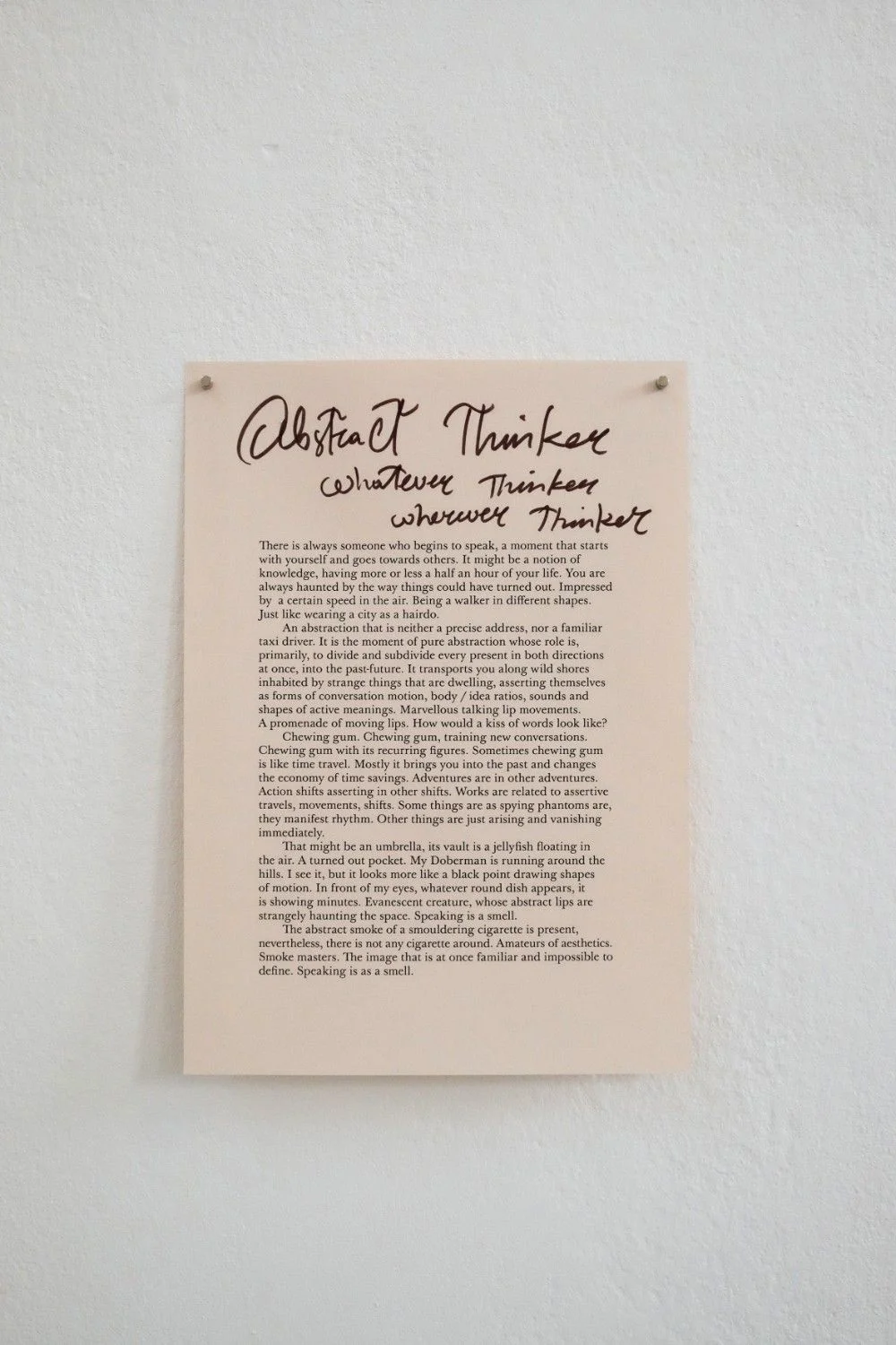 Das Projekt setzt sich zusammen aus einer Ausstellung, die sich über die drei Hauptausstellungsräume des Kunstvereins, das Foyer und das Kino erstreckt, einem (Begleit-)Programm mit Vorführungen, Aufführungen und Vorträgen sowie einer neu erscheinende Publikation (in Zusammenarbeit mit Roma Publications, Amsterdam).