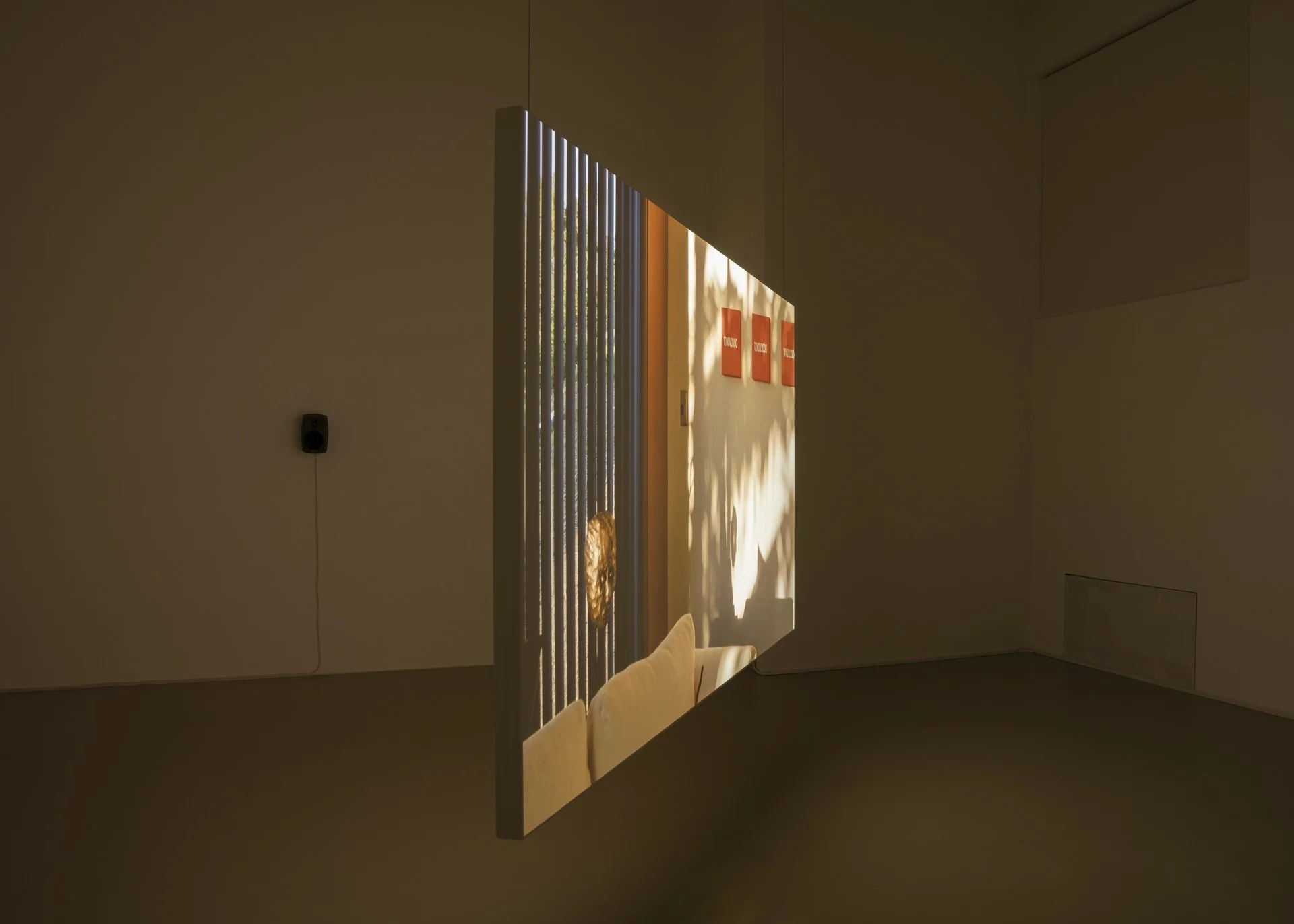 [8-10] Detail: Carissa Rodriguez, The Maid, 2018, 4K Video, Farbe, Ton, 12:22 min, Loop, zweiseitige Projektion (168 x 300 cm), in: Carissa Rodriguez, Imitation of Life, Kunstverein München, 2024. Courtesy die Künstlerin und Kunstverein München e.V.; Foto: Maximilian Geuter.