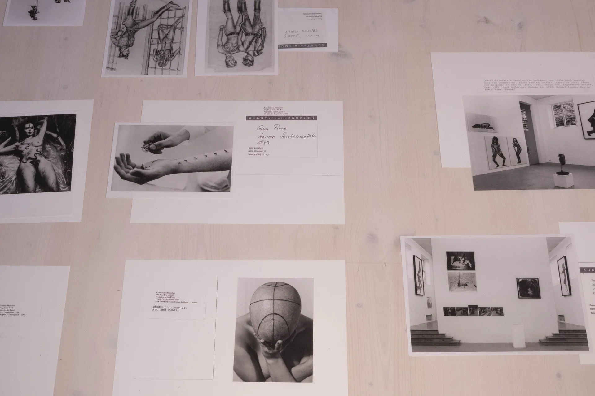 Während der Ausstellung Act Like You Know Me von Pippa Garner zeigt das Archiv Materialien zu Oh boy, it’s a girl!, einer Ausstellung, die 1994 von Hedwig Saxenhuber mit Astrid Wege kuratiert wurde. Die Ausstellung reagierte auf einen feministischen Diskurs, der, angestoßen insbesondere durch Judith Butlers 1991 in deutscher Übersetzung erschienenes Buch Das Unbehagen der Geschlechter die Konstruiertheit und Performativität von Geschlecht ins Zentrum stellte. Anders als vorherige Theorieansätze des Feminismus, die etwa die historische Kontingenz vorhandener Frauenbilder betonten, stellte Oh boy, it’s a girl! die Kategorien des Männlichen und Weiblichen und andere damit einhergehende binäre Unterteilungslogiken zur Disposition. Beteiligte Künstler*innen waren Bas Jan Ader, Jürgen Baldiga, Manuela Burghart, Jeanne Dunning, Lukas Duwenhögger, Thomas Eggerer/ Jochen Klein, Nicole Eisenmann, Valie Export, Robert Gober, Undine Goldberg/Cornelia Wittmann, Wendy Jacob, G. B. Jones, Birgit Jürgenssen, Mike Kelley, Jürgen Klauke, Elke Krystufek, Inez van Lamsweerde, Alix Lambert, Christian Lindow, G. J. Lischka, Robert Longo, Paul McCarthy, Dorit Margreiter, Paul Myoda, Christa Näher, Chuck Nanney, Luigi Ontani, Catherine Opie, Tony Oursler, Ria Pacquée, Gina Pane, Ugo Rondinone, Carolee Schneemann und William Wegman.