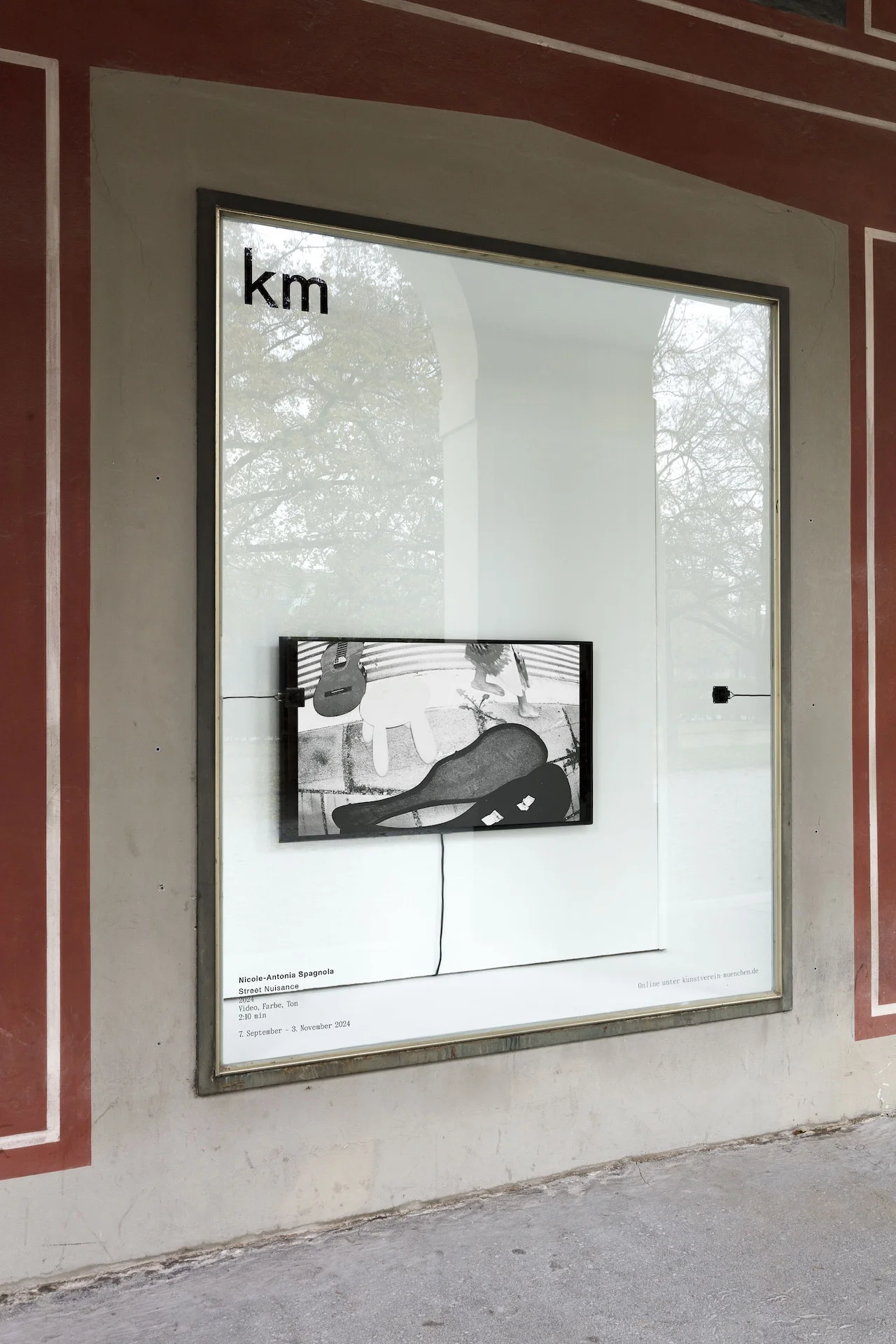 Installationsansichten: Nicole-Antonia Spagnola, Street Nuisance, 2024, als Teil von Schaufenster, Kunstverein München, 2024. Courtesy bei der Künstlerin und Kunstverein München e.V.; Foto: Sebastian Kissel.