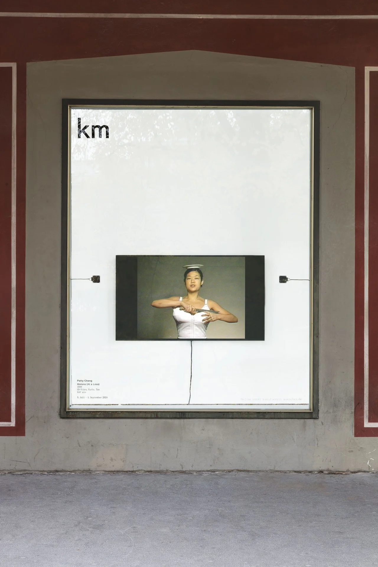 Installationsansichten: Patty Chang, Melons (At a Loss), 1998, als Teil von Schaufenster, Kunstverein München, 2024. Courtesy die Künstlerin und Kunstverein München e.V.; Foto: Sebastian Kissel.