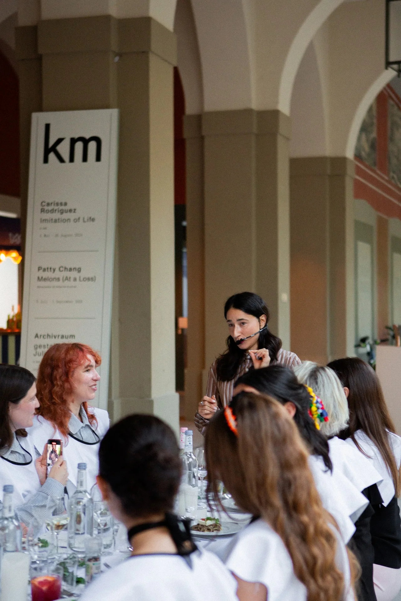 HULFE wurde 2020 von den Künstlerinnen Daphne Ahlers und Lilli Thiessen gegründet und konzentriert sich auf Accessoires, die sich mit der Unterstützung und der Erweiterung sowie Vervielfältigung von Körpern befasst. Ihre Praxis bewegt sich zwischen Skulptur, Mode und Design und das Duo entwirft speziell für das Arkadendinner eine neue Arbeit. Die Künstlerin und Performerin Sofia Duchovny setzt sich in ihren Werken mit den Ambivalenzen des Alltages, gesellschaftlichen Verhaltensregeln und den Erwartungen des Publikums auseinander und wird die Gäste durch den Abend begleiten.